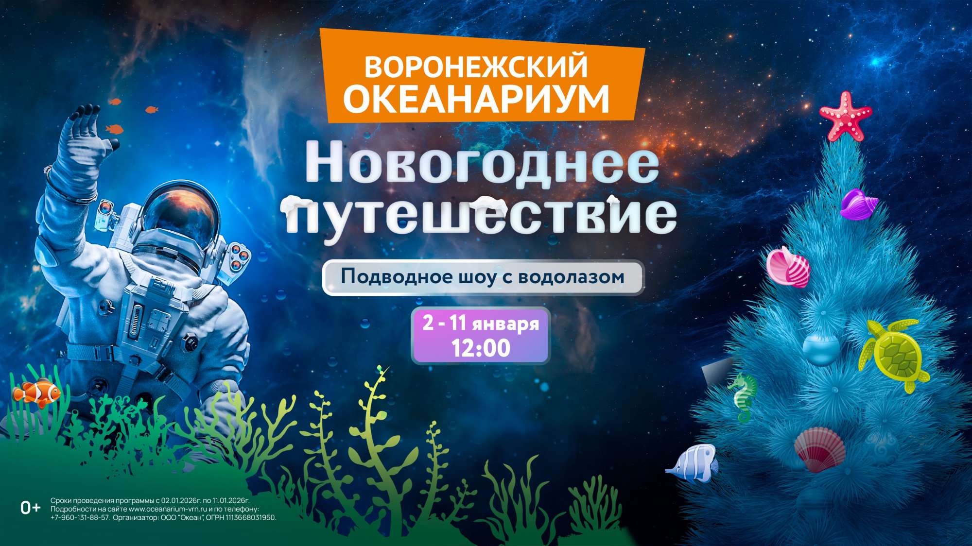 Таинственные глубины Воронежского океанариума хранят много секретов и чудес. Приглашаем вас отправиться в фантастическое путешествие с подводным астронавтом в главном океаническом аквариуме в окружении акул, мурен, зеленой морской черепахи и других удивительных обитателей. Посетив подводное шоу с водолазом «Новогоднее путешествие», вы сможете заглянуть в неизведанный мир будущего и узнать, как астронавты осваивают новую планету Нью-Терру и готовятся к встрече Нового года.
